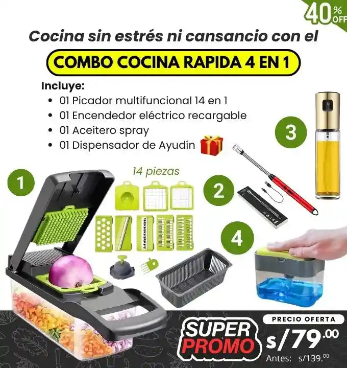 Con el Combo de Cocina 4 en 1 preparar tus comidas y mantener todo limpio en la cocina será super rápido 🥗🔪